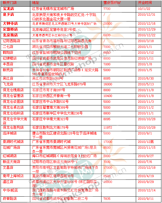3、2010年大 潤發(fā)在內(nèi)地新開門店盤點(diǎn)