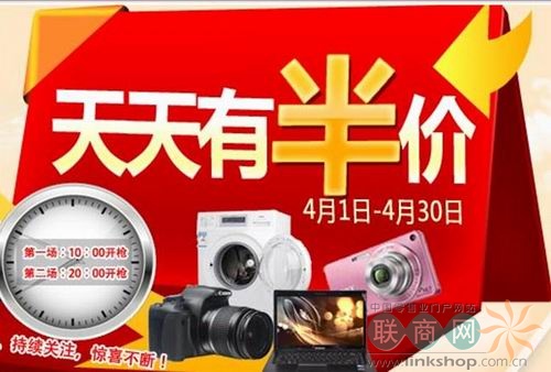 據(jù)了解,在周年慶活動期間,國美網(wǎng)上商城從4月1日-30日連續(xù)30天每天都有半價促銷活動,東芝、HTC、摩托羅拉、蘋果、尼康等大牌均參加本次天天有半價活動。半價商品是在國美網(wǎng)上商城售價的基礎(chǔ)上再打5折。
