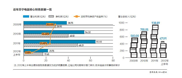 兩個(gè)月間募資127億元,蘇寧歷史上從未有過(guò)。此前蘇寧的三次增發(fā)基本都間隔一年,金額最高一次是2009年的30.55億元。這次的127億元,相當(dāng)于蘇寧2011年凈利潤(rùn)約兩倍半。