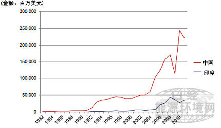 另一方面,印度自1991年開始進(jìn)行經(jīng)濟(jì)改革,向外國(guó)資本開放了許多可進(jìn)行直接投資的領(lǐng)域。從2006年起,外國(guó)資本投資日益擴(kuò)大。