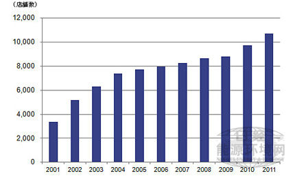 例如,從便利店領(lǐng)域來看,在10年前的2002年,中國(guó)僅主要連鎖便利店就約有5000家。到2011年,其數(shù)量已經(jīng)增加到1萬家以上。