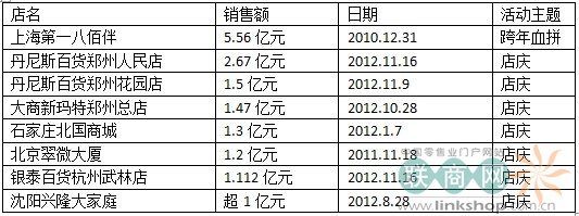 全國百貨單店單日銷售額過億排名