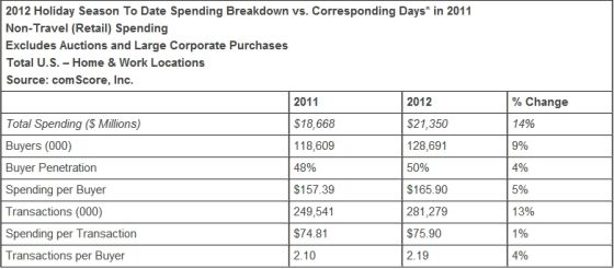 comScore董事長吉安·福爾格尼(Gian Fulgoni)表示:“‘網(wǎng)購星期一’是假期中消費(fèi)者網(wǎng)購支出的最高點,隨后一周中也有幾天表現(xiàn)強(qiáng)勁,不過在這一周的后半部分,消費(fèi)者網(wǎng)購支出的同比增長明顯下降。這是由于商家開展促銷活動,部分消費(fèi)者將網(wǎng)購提前至感恩節(jié)至‘黑色星期五(11月23日,感恩節(jié)后一天)’期間。