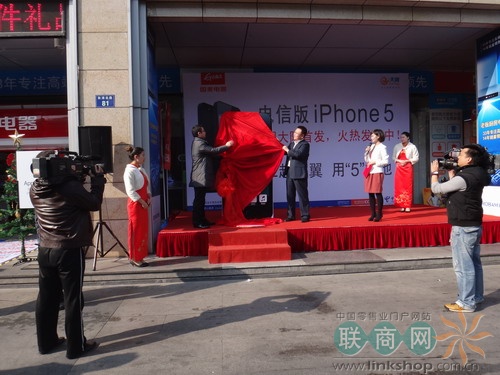 聯(lián)商網(wǎng)消息:備受關(guān)注的行貨版iPhone5于今天全面上市。據(jù)了解,國(guó)美電器作為蘋果授權(quán)銷售渠道,今日凌晨開始正式首銷iPhone5!浙江國(guó)美更分別于秋濤路新活館及立元大廈旗艦店舉行了電信版和聯(lián)通版iPhone5的首發(fā)儀式。即日起消費(fèi)者可在浙江國(guó)美電器任意門店購(gòu)買到蘋果iPhone5。