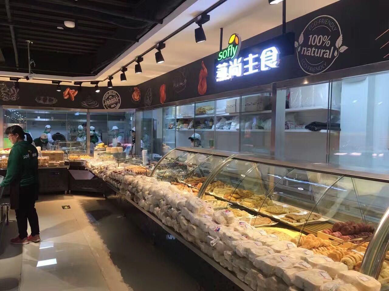 第一:使用全新的識別系統(tǒng)。打破了首航一直沿用的紅藍的主色調(diào),首次使用墨綠色作為主色調(diào)。這家店首次以“Sofly首航”命名,為什么叫“Sofly首航”呢?原來首航的全英文名“Sofly”代表著與國際接軌,進口商品更豐富,簡約國際范十足。據(jù)現(xiàn)場負責人介紹,圖形“葉子”象征著綠色有機,自然健康,與首航一直以來秉持的一切為了顧客的服務(wù)宗旨相吻合。記者在門店發(fā)現(xiàn)這樣的綠色元素隨處可見。每個部門和品類陳列區(qū)域都有醒目的標識標志,足以凸顯首航全面升級的決心。