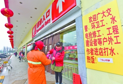 北京超市發(fā)旗下所有門店向全市環(huán)衛(wèi)工人發(fā)出溫暖的呼喚“您們辛苦啦,進(jìn)來(lái)喝杯熱水吧”,11月中旬一場(chǎng)小雪后的寒流直接讓北京進(jìn)入“速凍模式”,氣象臺(tái)接連發(fā)布了寒潮預(yù)警和結(jié)冰預(yù)警。