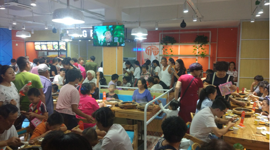 據(jù)了解,9月2日的慶云分外涼爽,一早就陸續(xù)有很多人到店咨詢開(kāi)餐時(shí)間。有些人是周邊的住戶、有些則是從較遠(yuǎn)的地方慕名而來(lái),上午11點(diǎn)左右,人越來(lái)越多,從他們的表情能感受到他們對(duì)美味的期待,有許多家長(zhǎng)帶著小朋友,店里電視放著他們喜愛(ài)的動(dòng)畫片,小家伙們難得這么專注和安分。