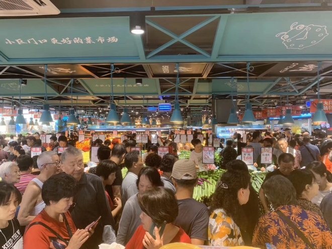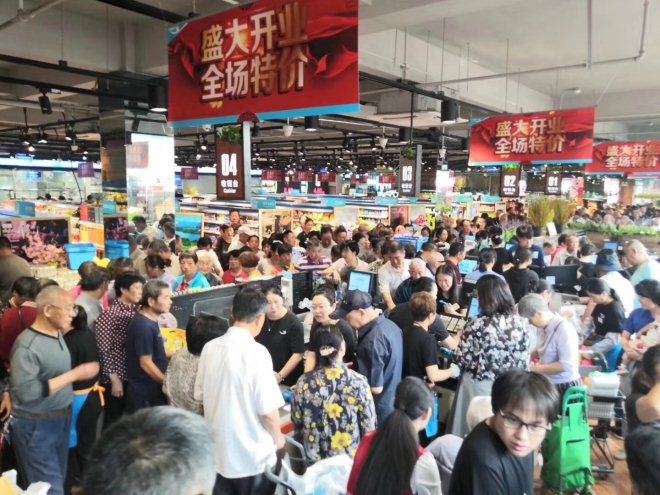 該店位于合肥市臨泉路,屬于樂城超市四年來打造的600平經(jīng)營面積的新店型。開業(yè)吸引了當(dāng)?shù)仡櫩涂駸岬淖放酰T店被迫多次限流。