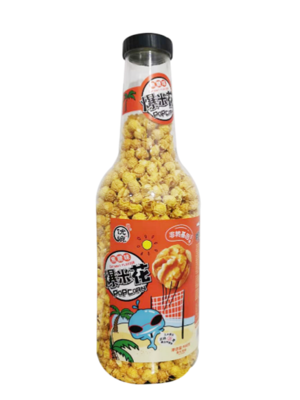 此款商品做成了巨型瓶爆米花,設(shè)計(jì)上將公司IP小鯨魚根據(jù)不同口味進(jìn)行場(chǎng)景化設(shè)計(jì),焦糖口味的爆米花,小鯨魚在沙灘邊打排球,奶油味的爆米花,小鯨魚油坐著飛機(jī)在云朵間穿梭;顫娚鷦(dòng)的畫風(fēng)與受眾審美高度匹配,吸引到了一批忠實(shí)顧客。