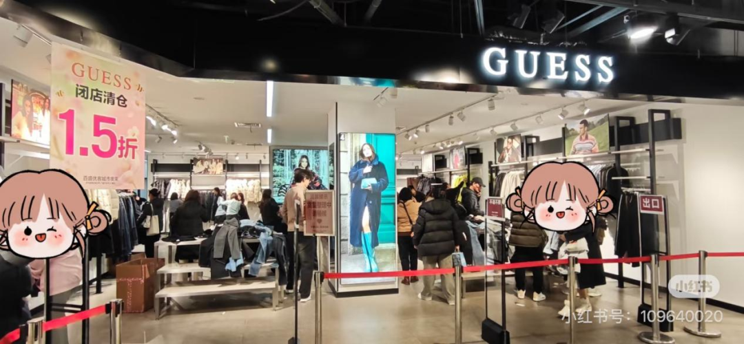 大店直營模式下高昂的成本成為最直接的壓力。早期重金投入的核心商圈店鋪,在租金高企與客流分化的雙重打擊下承壓嚴重。為了消化龐大的庫存,GUESS頻繁進入奧特萊斯渠道,“折扣常態(tài)化”直接刺破了品牌介于快時尚與輕奢之間的泡沫。