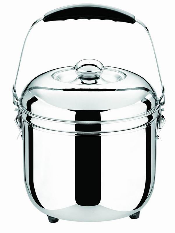 將食物放入內(nèi)鍋(使用冷水蒸煮),置于爐火上燒煮,沸騰后(或熄火后),將內(nèi)鍋放入保溫外鍋內(nèi)并將保溫外鍋上的扣夾與內(nèi)鍋扣耳連接扣緊,蓋好保溫外蓋。食物在內(nèi)鍋里繼續(xù)蒸煮,延時(shí)不等后,食物即可取出食用。 注意事項(xiàng): 1、 保溫外鍋不得放在爐火上直接燒煮; 2、 灶具關(guān)火后,內(nèi)鍋必須移入保溫外鍋內(nèi); 3、 嚴(yán)禁使用電爐類灶具; 產(chǎn)品優(yōu)點(diǎn): 節(jié)能:用蒸、煮、燉、煲等方式做飯、湯、肉時(shí),僅需將水燒沸后數(shù)分鐘內(nèi)即可關(guān)閉爐火;節(jié)省50-70%以上的燃?xì)狻? 省時(shí):煲湯、煮飯、燉肉所需時(shí)間約等同燒開水的時(shí)間,難煮的食物在水燒開后1-3分鐘即可熄火,熄火后無需專人看管,節(jié)省50-70%以上的時(shí)間。 安全:無高壓裝置、常溫蒸煮、無需通電、雙層不銹鋼保溫外鍋保護(hù),絕對(duì)安全。 環(huán)保:加熱時(shí)間短,熄滅后無需能源,降低了廚房空氣污染。 營養(yǎng):智能圈散發(fā)的熱能360度全包圍的對(duì)鍋內(nèi)食物進(jìn)行立體加熱,加工后的食物原汁原味、鮮嫩可口,不走失食物的營養(yǎng)成分 健康:產(chǎn)品全套采用高級(jí)不銹鋼材料制作而成,無涂層,加工的食物不含任何有害物質(zhì),保護(hù)您的身體健康。 保溫保鮮:20℃環(huán)境下,可保溫4小時(shí)65℃,8小時(shí)45℃;因食物處于保溫狀態(tài),細(xì)菌不能生長(zhǎng)而延長(zhǎng)保鮮時(shí)間。 一鍋多用:能煮、能蒸、能燉、能鹵,還能長(zhǎng)時(shí)間保溫保鮮,夏天使用還可以當(dāng)冰桶。 使用指南: 1、 煮飯、煮粉干、煮水餃,水大沸后,即可熄火,將內(nèi)鍋移入保溫外鍋。 2、 煲排骨湯、雞湯、綠豆湯、粥,水沸后續(xù)煮1-2分鐘,即可熄火,將內(nèi)鍋移入保溫外鍋。 3、 紅燒牛肉、羊肉、豬腳、啤酒鴨,燒沸騰后續(xù)煮2-3分鐘,即可熄火,將內(nèi)鍋移入保溫外鍋。 4、 蒸米粉肉、蒸飯(同時(shí)煲湯)、煮粽子,水沸后續(xù)煮1-3分鐘,即可熄火,將內(nèi)鍋移入保溫外鍋。 5、 安全環(huán)保、無高壓,常溫蒸、煮 、燉、鹵,原汁原味; 6、 使用涼水煮食物,各種食物在保溫外鍋內(nèi)續(xù)煮延時(shí)不等時(shí)間(15-25分鐘以上)后食用。