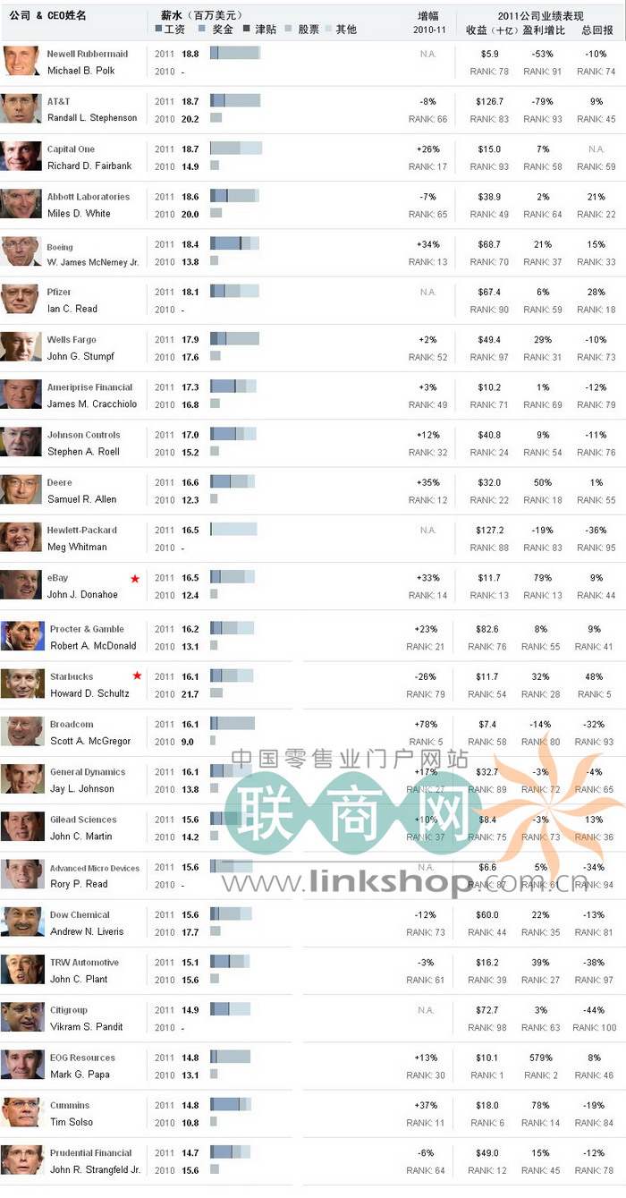 ★美國工資最多的 CEO TOP100★