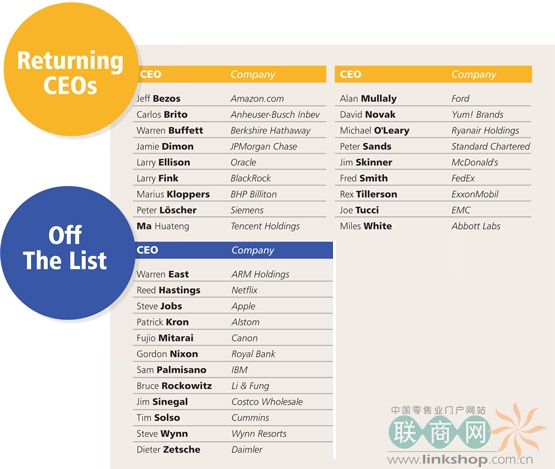 以下是TOP30全球最棒CEO中的零售人