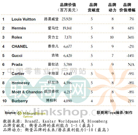 ★2012行業(yè)品牌價值TOP10之奢侈品牌★