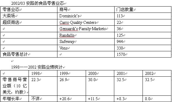 安路是一家中高檔超級(jí)商店、大賣場(chǎng)和超級(jí)商店運(yùn)營(yíng)商,營(yíng)業(yè)網(wǎng)絡(luò)遍布美國(guó)和加拿大。通過幾樁并購(gòu)交易,安路的營(yíng)業(yè)額大幅增長(zhǎng)——雖然目前也經(jīng)歷著嚴(yán)重的并購(gòu)消化不良癥。安路旗下的Genuardi店進(jìn)行了一些改革,但結(jié)果似乎不怎么受顧客歡迎,而Dominick’s連鎖店也由于勞工問題不得不出售。不過,安路并不總是傳出壞消息,它的電子商務(wù)就發(fā)展得相當(dāng)不錯(cuò),自有品牌項(xiàng)目被公認(rèn)為最佳。