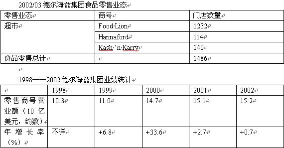 德爾海茲很早以前就走出了比利時(shí)本土市場(chǎng),現(xiàn)在已經(jīng)成功的在美國(guó)雜貨零售業(yè)占有了重要位置。當(dāng)然,德爾海茲進(jìn)入美國(guó)也并非一帆風(fēng)順,為了優(yōu)化其在美國(guó)的營(yíng)業(yè)網(wǎng)絡(luò),它關(guān)閉和出售了一連串門店。現(xiàn)在,德爾海茲通過Food Lion, Hannaford和Kash ‘n Karry連鎖超級(jí)商店/超市幾個(gè)商號(hào)運(yùn)營(yíng)。2000年,公司業(yè)績(jī)大幅增長(zhǎng)是由于收購(gòu)了Hannaford Bros.的緣故。