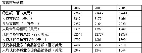 以港幣計(jì)算,1999到2003年間,香港零售額約下降了3%——是亞太地區(qū)負(fù)增長最多的市場之一。零售額下降有多方面的因素,如消費(fèi)者信心低、經(jīng)濟(jì)增長疲軟、失業(yè)率高、通貨緊縮壓力大,另外香港市民過海到中國大陸采購便宜商品也是部分原因。