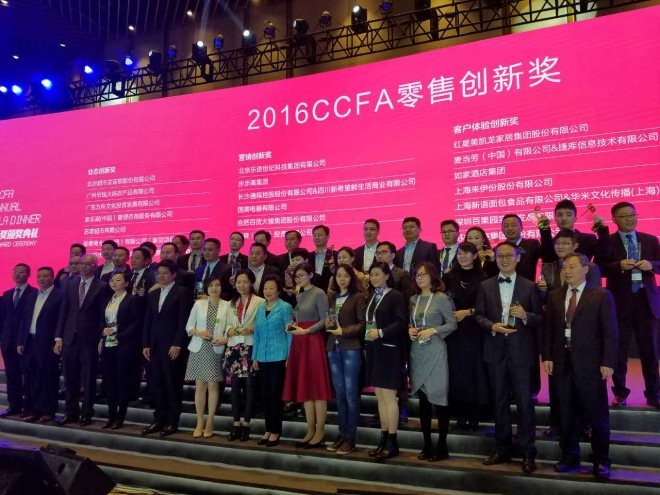2016中國(guó)全零售大會(huì)的主會(huì)場(chǎng)進(jìn)行了2016CCFA十佳企業(yè)大學(xué)的頒獎(jiǎng)儀式。