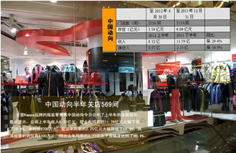 截至9月末,男裝還有887個(gè)銷售網(wǎng)點(diǎn)。上半財(cái)年,波司登非羽絨服業(yè)務(wù)的店鋪網(wǎng)點(diǎn)數(shù)比2012年3月31日凈減少77家。此外,在男裝業(yè)務(wù)上,銷售收入較去年同期減少13.8%至1.46億元,占非羽絨服總額的30%。對(duì)于男裝部分業(yè)績(jī)的下滑,波司登投資者關(guān)系經(jīng)理CarolMak解釋稱,主要和今年未給男裝分銷商在指標(biāo)上施壓有關(guān),因?yàn)榻衲暾麄(gè)男裝行業(yè)的情況不好。他還指出,這也是公司在避免重復(fù)體育板塊之前為沖銷售而不停拓展銷售網(wǎng)絡(luò)和壓分銷商的情況。