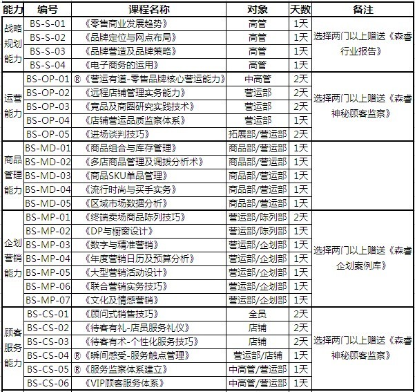森睿內(nèi)訓(xùn)課程體系之零售品牌完全方案