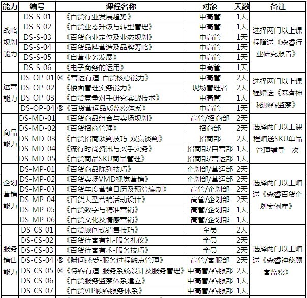 森睿內(nèi)訓(xùn)課程體系之零售百貨完全方案